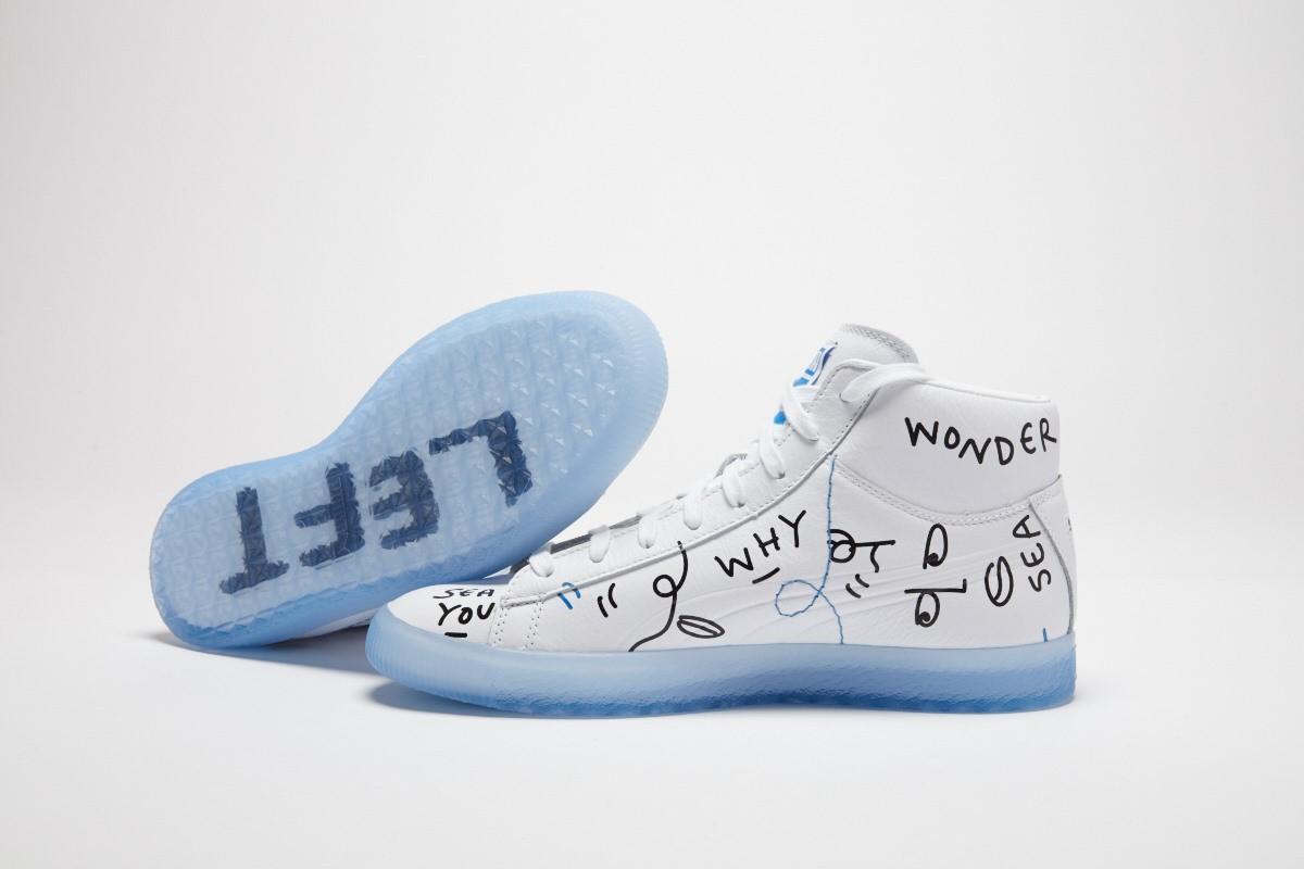 Phillips Auction House has a new exhibition this summer that brings together fashion, art, culture, and charity. Curated by Elizabeth Semmelhack, Senior Curator at the Bata Shoe Museum in Toronto, Tongue + Chic features shoes designed by some of today’s most important artists, including KAWS, Kehinde Wiley, Jenny Holzer, Damien Hirst and Takashi Murakami. Borrowed from private collections and museums, the objects on display show that shoes are a blank canvas with unlimited potential for expression. From intricate embroidery to carved rubber soles, artists in the exhibition have used a range of media to convey diverse messages.