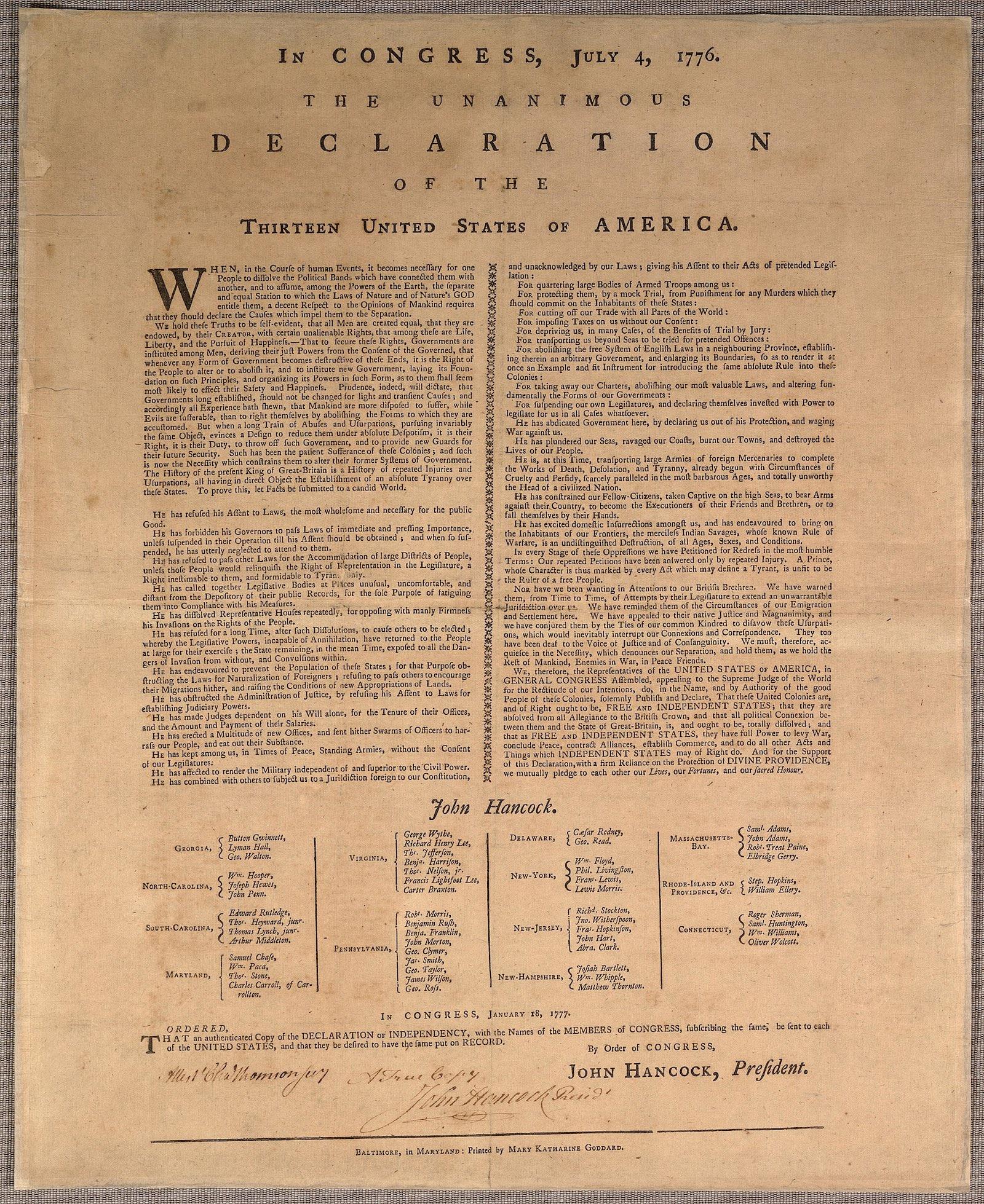 Detail of a Dunlap Broadside, The Declaration of Independence. Printed in July 1776. Library of Congress, Washington D.C.