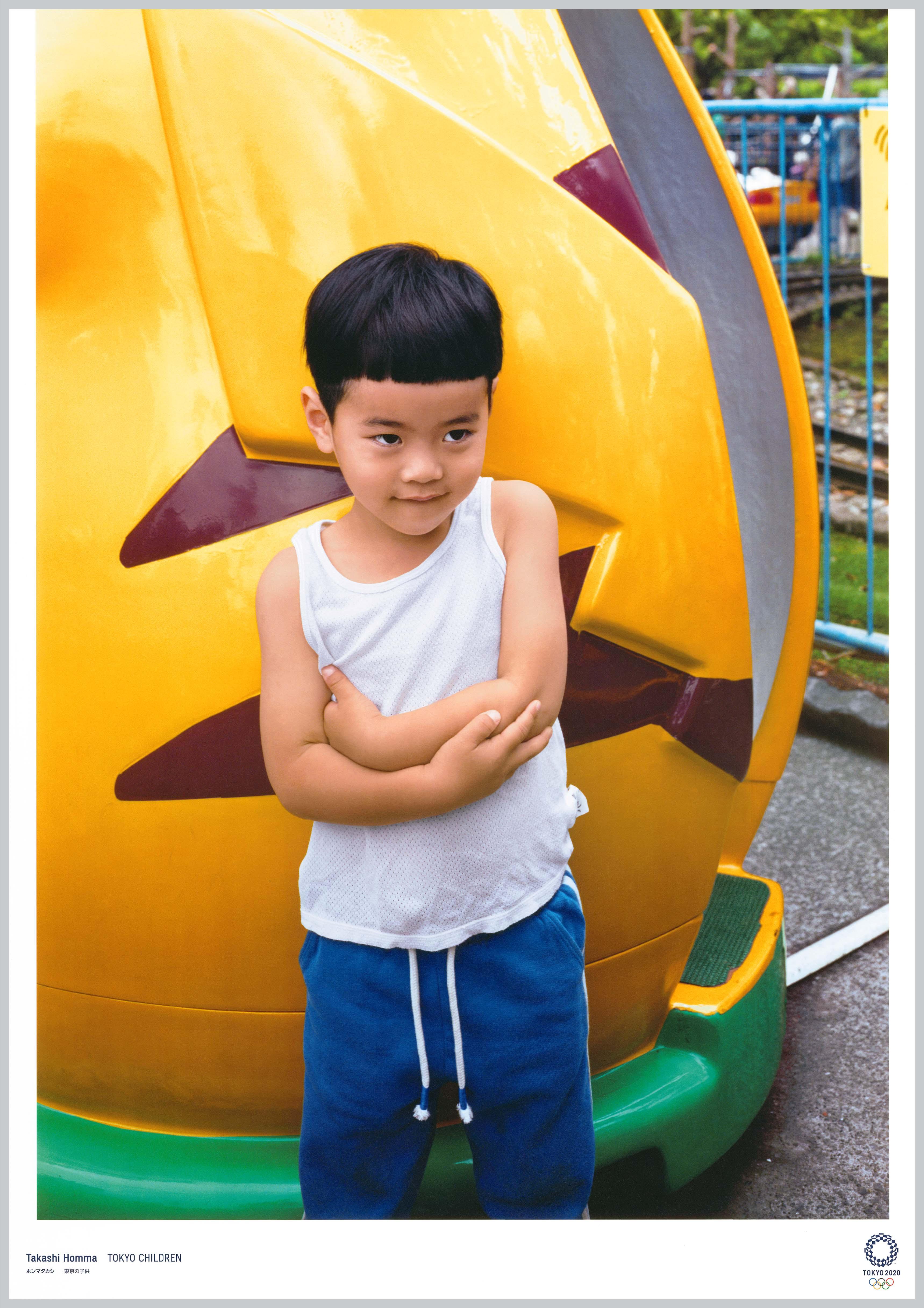A smiling child crosses his arms on a playground. Takashi Homma’s simple image of childhood innocence reminds us of the real people of Tokyo, and of the pure spirit of Games, one that is best felt when we marvel at them through a child’s eyes.