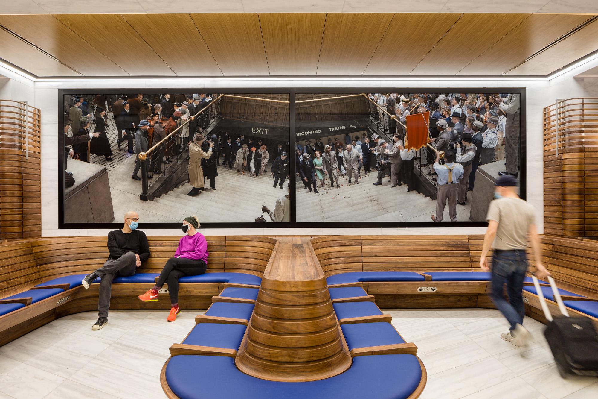 Housed in the renovated 1912 James A. Farley Post Office, the building is a modern tribute to the station of the past. Providing a new hub for Amtrak and the Long Island Rail Road, the space includes a one-acre sky-lit atrium, free wifi, a floating clock, and world-class public art.
