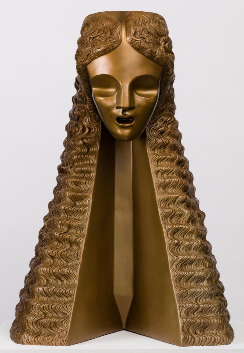 United by a common thread of female power and mysticism, works from the 29 artists (a number chosen due to its astrological significance) range from contemporary to classic, including grande dame of feminist art Yoko Ono’s sculpture “Door.” Lisa Yuskavage is also featured, whose reclamation of the female nude in painting has likely been a major influence on the works of younger participating artists. Sophia Narrett’s epic embroidered work “Stuck” (2016) inverts this traditionally female art form, taking a media that was once viewed as small and precious, creating instead a grand tableau of female nudes unconcerned with the male gaze. Sarah Peters similarly brings the past to the present, her authoritative bronze bust “Figurehead” (2018), convincingly summons a previously unknown female deity.