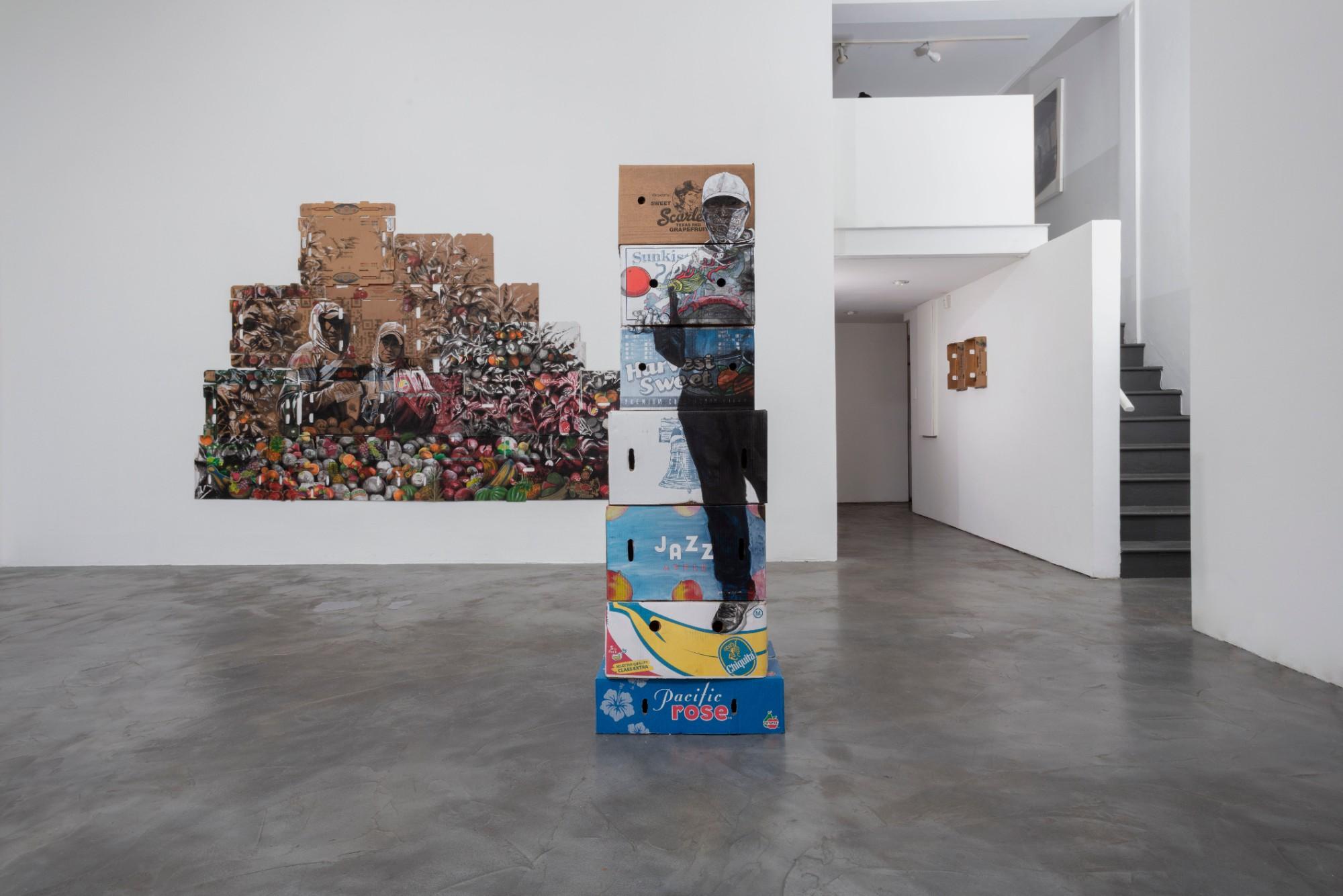 Immigrating to the United States from Mexico when he was 20 years old, Narsiso Martinez attended a community adult school to earn his high school diploma while working at apple orchards in Washington State. Step by step he gained his Associate of Arts degree, a BFA, and finally his MFA from California State University Long Beach in 2018. Making drawings on cardboard produce boxes to commemorate the migrant experience and farm laborers for the past several years, Martinez presents a sensational selection of new works in Superfresh, his inaugural exhibition with the Charlie James Gallery.