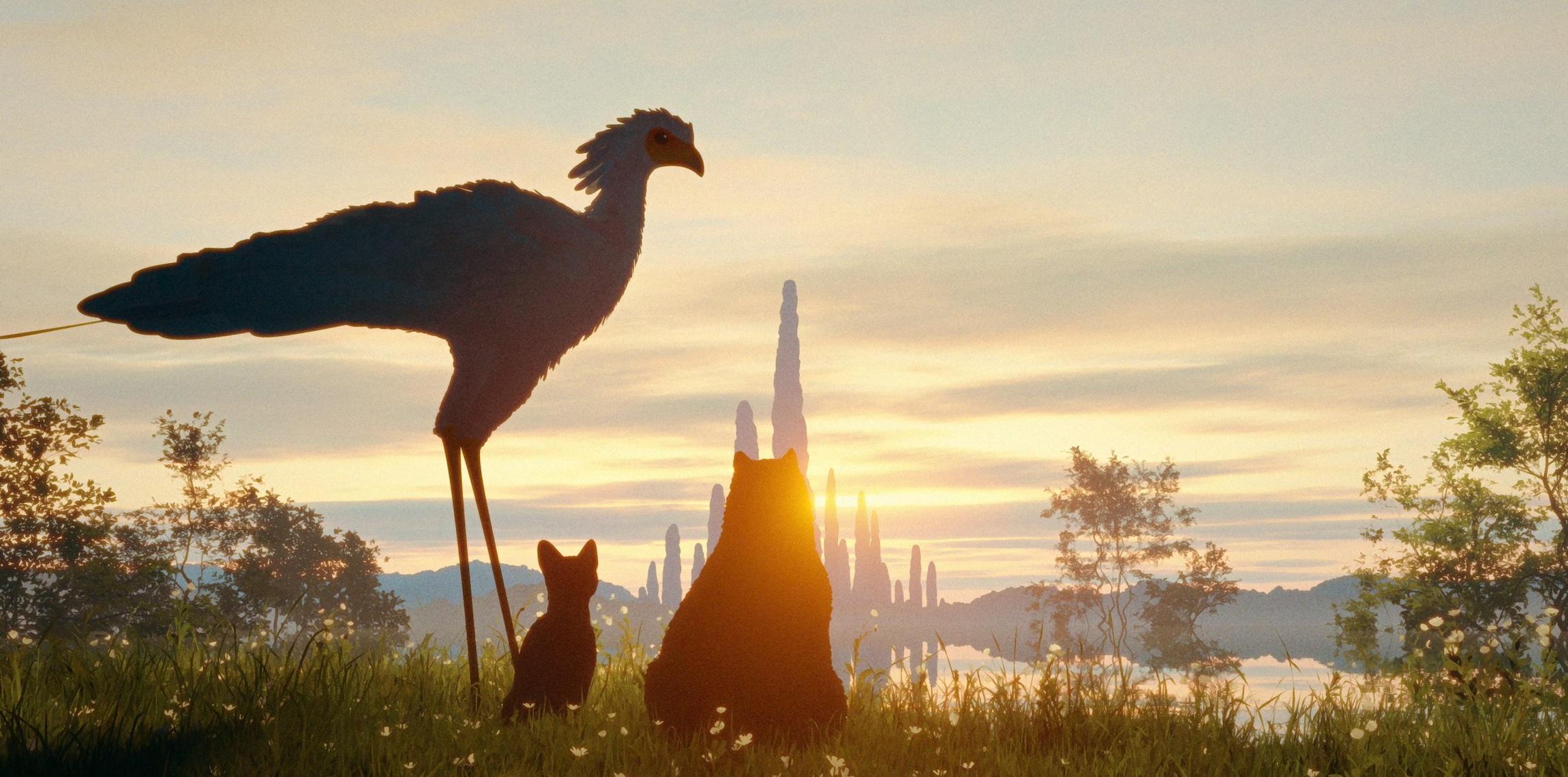 Zilbalodis doesn’t draw frames, instead, he executes a pre-viz CG version of the scene with a rough environment which he explores with virtual cameras, adjusting the set and background for compositional purposes and adding lighting and effects along the way. On his first feature film, Away, he wrote, directed, animated, and composed the music. The idea was to educate himself in preparation for the day he would assemble a team.