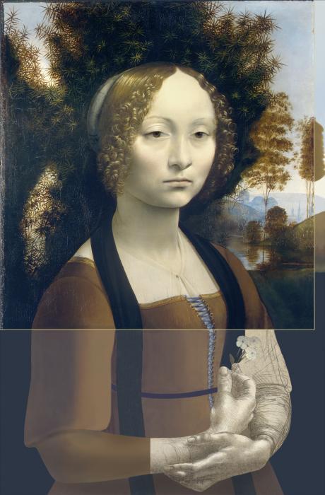A reconstruction of what the full Ginevra de’ Benci portrait may have once looked like.