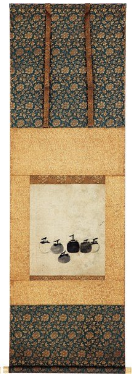 Six Persimmons and Chestnuts depict common, mundane objects in a straightforward way. The brushwork is simple, effortless but with a recognizable degree of skillfulness. In the Chinese painting environment, it was common for artists to reference previous masters through the use of brushwork “in the style of [name of the master].” Muqi did not do this and by keeping his brushwork spontaneous, he embraced the foundation of Zen art: monochrome ink painting that allows for individual expression, tranquility, and absence of perfection. The artist therefore provided an unmediated understanding of the object without the intrusion of his own personal style. Many Chinese literati and connoisseurs found themselves let down by this unorthodox choice and had little interest in the preservation of such works.