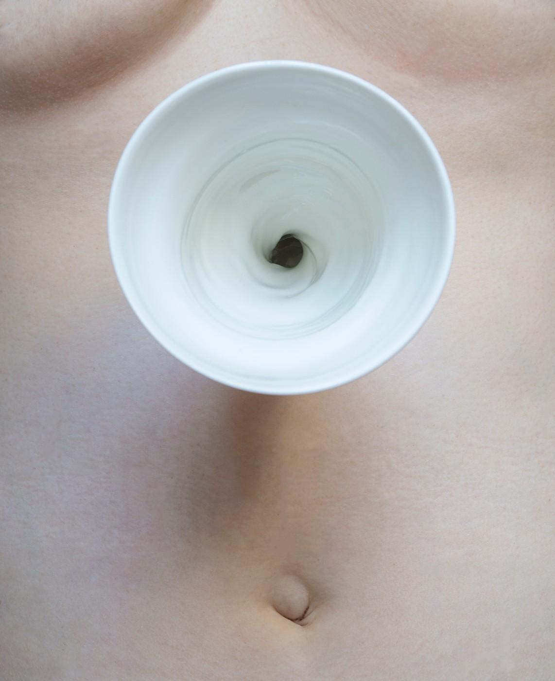 Betty Tompkins encourages the reexamination of language with her sometimes unsettling paintings, combining stark, stenciled words with colored backgrounds. Uli Aigner, committed to throwing one million pieces of porcelain tableware in her lifetime, has created engraved goblets specifically for this exhibition. Margot Pilz and Béatrice Dreux use video and painting to explore female representation through re-appropriating Neolithic goddess art, mythological women, and religious icons. Joan Semmel’s oil painting shows the feminine beauty of strength and experience. Stunning photos by Sabine Jelinek and Eva Schlegel express women’s metaphoric potential to soar.