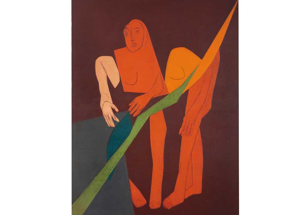"Paintings from the diagonal series are the first of Mehta’s mature style, with an emphasis on form over content, and mark a watershed in his long engagement with figuration. The artist explained, 'Painters who are over concerned with content, burn themselves out […] my experience is now transformed into colour and form. When you transpose your ideas into colours and forms, you are making a suggestion. A suggestion is stronger than a direct message.' (Artist statement, G. and U. Beier, ‘Contemporary Art in India’, Aspect: Art and Literature, Australia, no. 23, January 1982, unpaginated)"