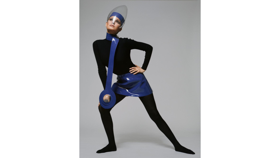 In the 1960s with the space race dominating the public eye, Cardin launched his “Cosmocorps” collection, using unconventional materials like vinyl to create futuristic looks that played off of real spacesuits. His groundbreaking designs were favored by major celebrities including Raquel Welch and Jackie Kennedy and were used in film and theater.