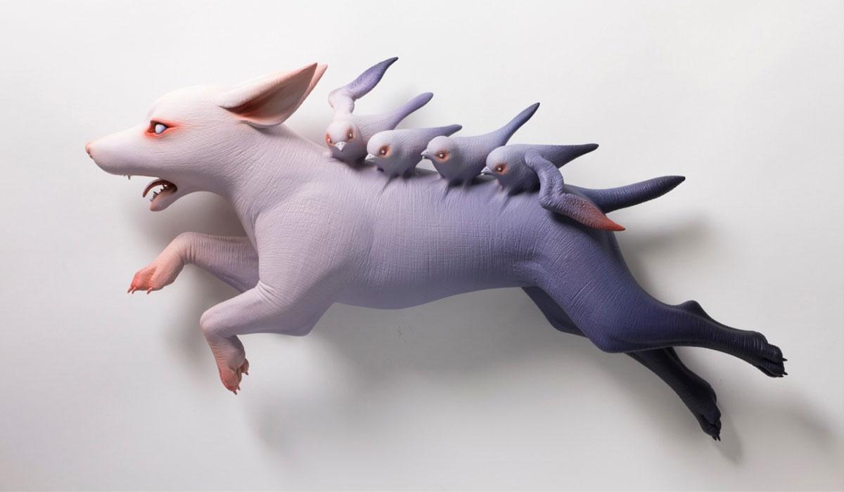 Erika Sanada's early inspirations stemmed from creatures and characters of horror films. Watching these stories were a way for her to escape unpleasant realities during childhood. She creates intricate, hairless ceramic creatures—often adorable but also unsettling and bizarre. Sanada received her BA in Tokyo and worked as a commercial illustrator and a makeup artist for film before moving to California where she received her MFA in sculpture. The artist is represented by Modern Eden Gallery in San Francisco where she currently lives and works.