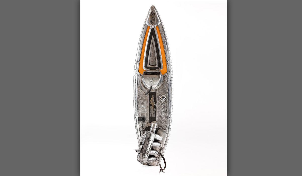 Bates Wilson, Traveler, recycled materials ranging from engine parts, highway road sign and scrap aluminum diamond plate