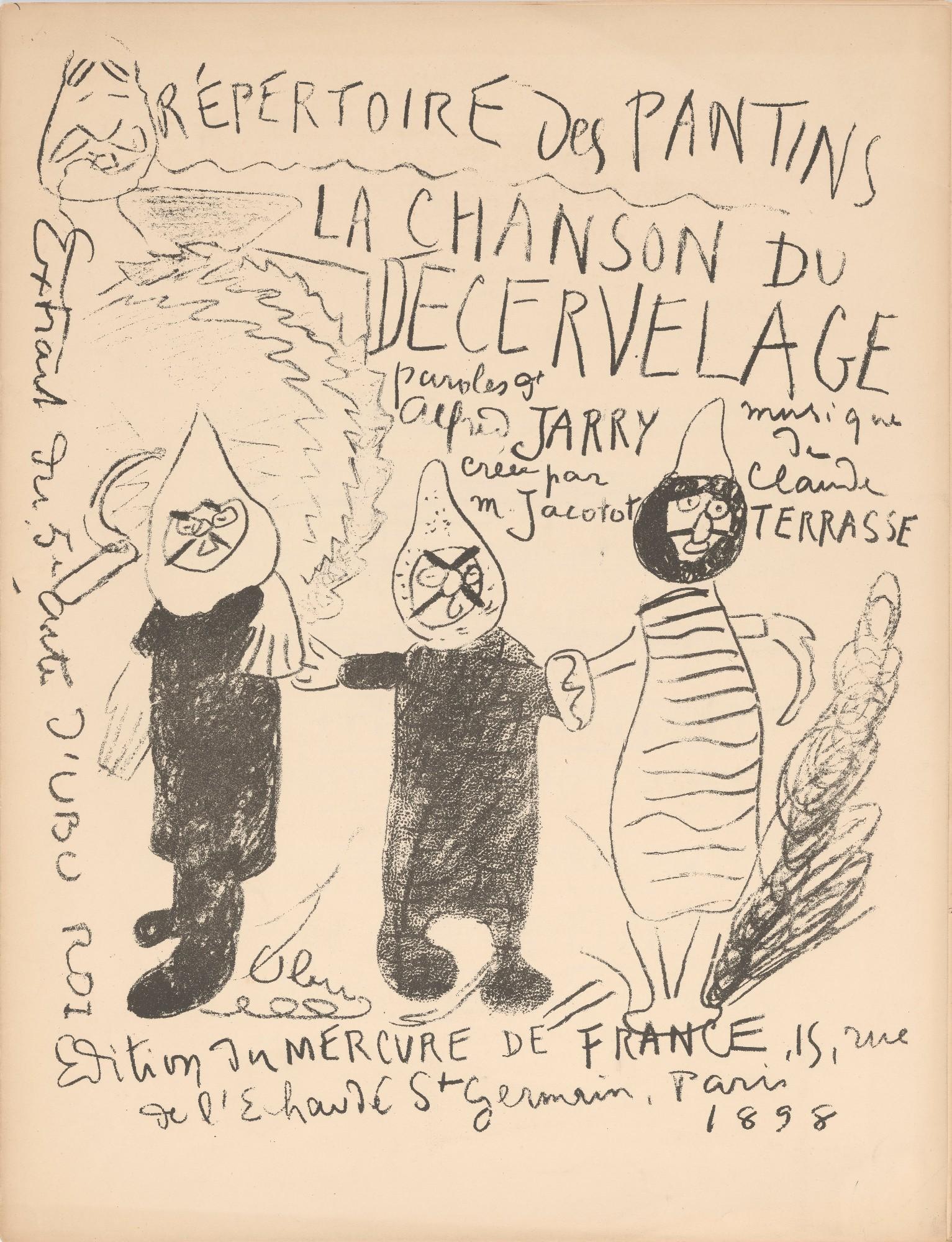 Alfred Jarry (1873–1907) and Claude Terrasse (1867–1923), Répertoire des Pantins: La chanson du décervelage (Paris: Mercure de France, 1898). The Morgan Library & Museum, gift of Robert J. and Linda Klieger Stillman, 2017. PML 197091.
