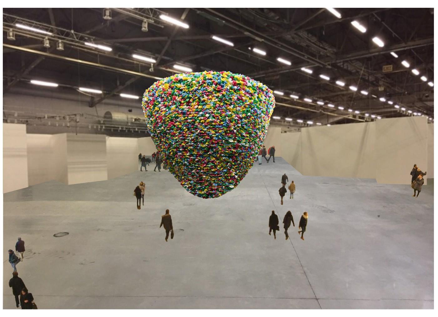 In 1918, Belgian abstract sculptor, painter and founding member of the De Stijl group, George Vantongerloo, created Komposition Aus Dem Ovoid (Composition from the ovoid). Over a hundred years later, Ryan Gander comically revisits this artwork as an enlarged and swollen form made of up of ovoids covered in multi-color artificial fur balls, exhibited on a white plinth. Gander’s work, Het Spel (My neotonic ovoid contribution to Modernism) (2019) is presented by Lisson Gallery (London, New York). Location: Champagne Lounge, Pier 94.