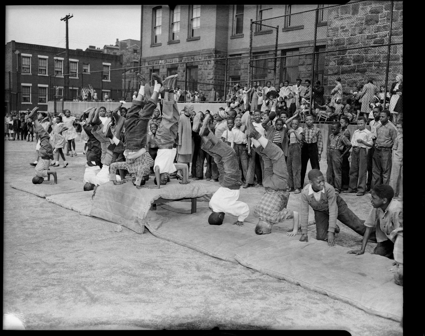 At the Courier, one of the nation’s most important black newspapers, he was out on the beat, covering the day’s news—from civil rights struggles to local politics, from celebrations to tragedies. He was an insider, heading backstage to shoot jazz musicians and sharing candid moments with sports legends. Harris also ran his own portrait studio on The Hill, catering to weddings, social clubs, and churches. On his daily travels around Pittsburgh, Harris captured the vibrant landscape he knew so well. Closer to home, he recorded tender, funny moments with his kids and family. Inevitably, even after covering scenes of nightlife or an after-hours emergency, he returned to his basement studio in Homewood to develop the day's photos.