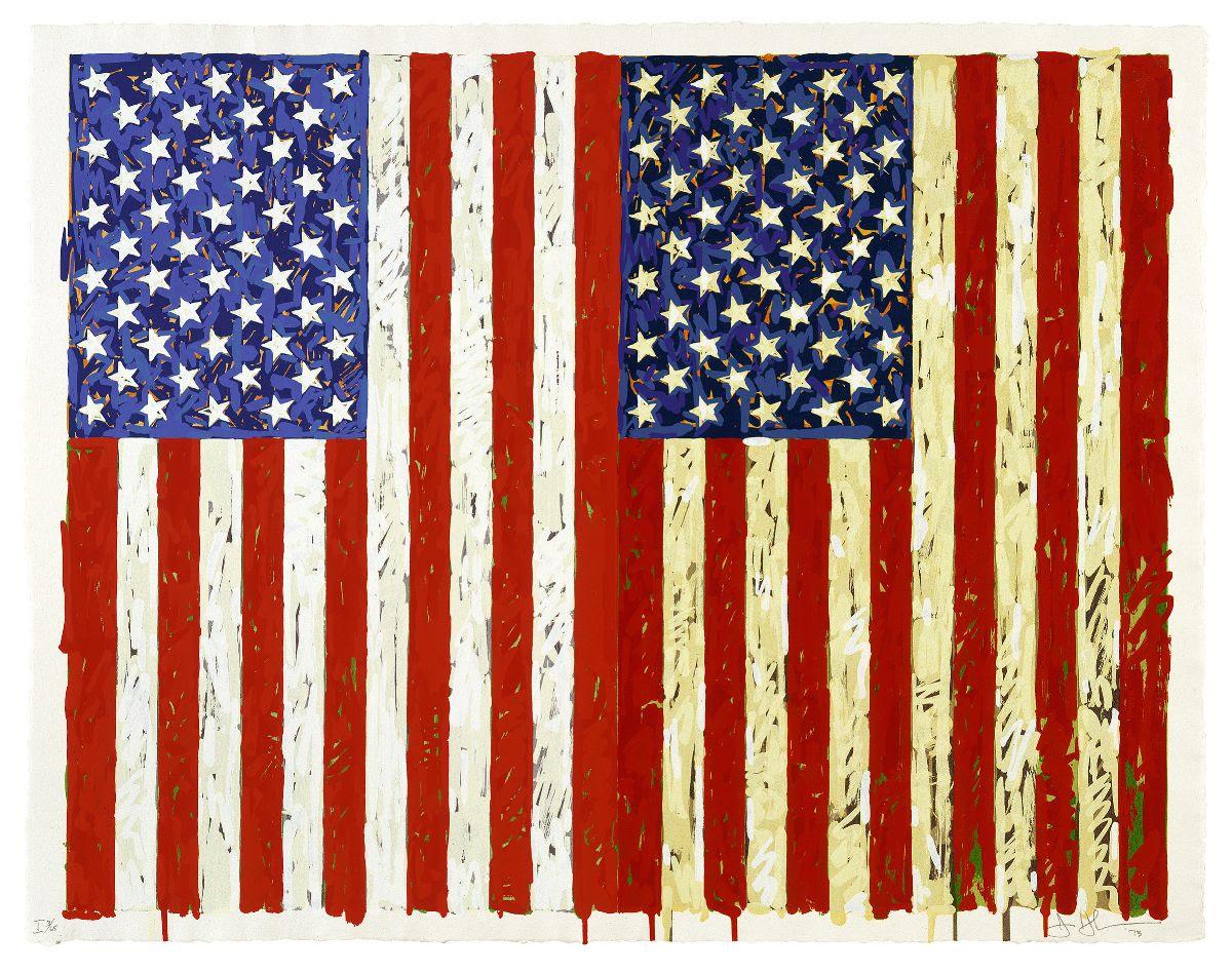 Jasper Johns, Flags I, 1973, screen print on paper, 27 3/8 x 35 ½ in., ed. 3/65, Collection Walker Art Center, Gift of Judy and Kenneth Dayton, 1988.