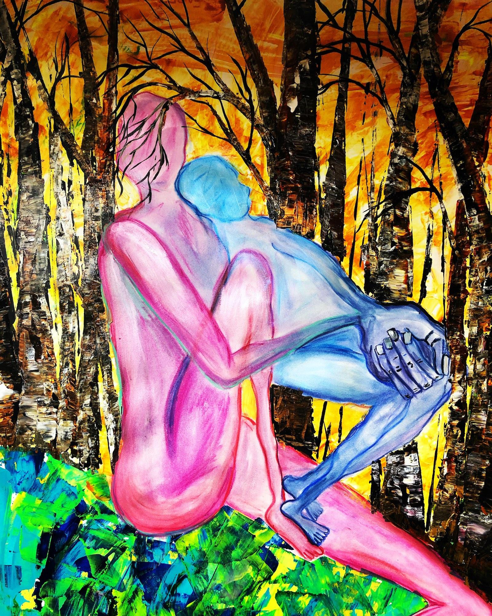 Leslie Weissman, Woods Thoughts. Mixed media. 22 x 30 inches. Other artworks available as NFTs at LESSLEEB on OpenSea.