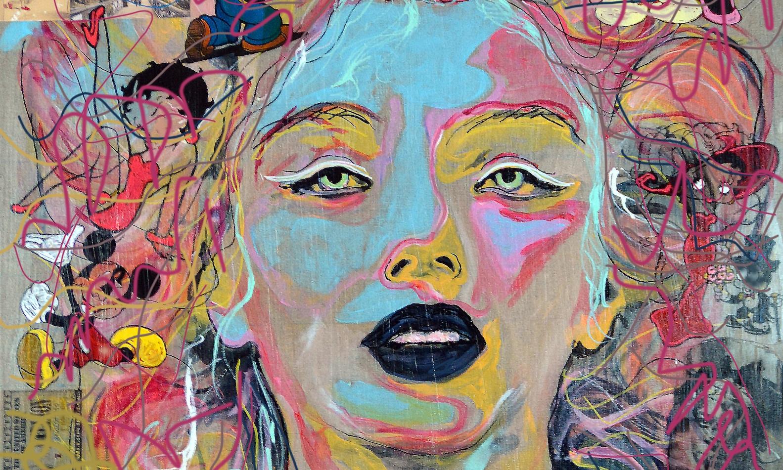 Gilda Oliver, detail of Mona Marilyn, an NFT listed at GILDAOLIVER on OpenSea of original work, Marilyn's Favorite Thoughts, 2014.
