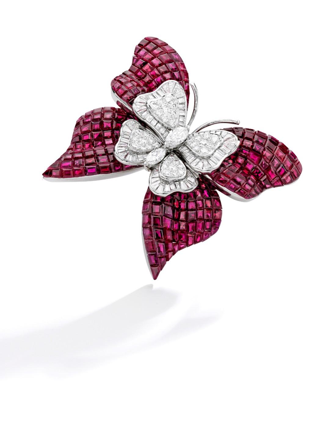 Sotheby's auction of Magnificent Jewels was led by a stunning selection of jewelry from Barbara Sinatra's personal collection, with all 39 pieces selling for a total of $4.7 million. Barbara’s emerald-cut 20.60-carat Diamond Engagement Ring, which was presented to her by Frank in a glass of champagne, led the collection, selling for $1,695,000 after an intense competition between 5 bidders (estimate $1/1.5 million). Mrs. Sinatra’s signed jewels were highlighted by a sophisticated Mystery-Set Ruby and Diamond Butterfly Brooch by Van Cleef & Arpels, which realized $567,000–well above its high estimate of $175,000. A total of 60 pieces of Barbara’s fine jewelry collection offered across the three sales, sold for a combined total of $5 million, with every piece finding a buyer.