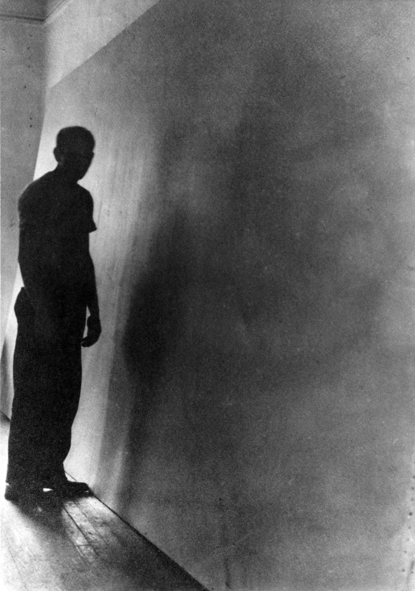 Jackson Pollock with the unpainted canvas for Mural in his and Lee Krasner’s Eighth Street apartment, New York, summer 1943.