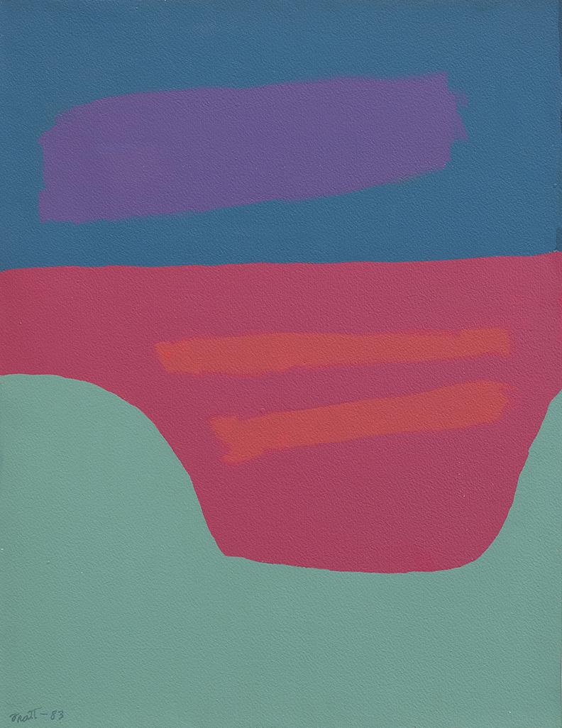 Across her prolific career spanning more than six decades, Dorothy Fratt consistently displayed an intuitive gift for color. Though her work bears recognizable affinity with both the Washington Color School and the arid intensity of the Arizona desert, where she spent the majority of her career, she remains an exceptional figure within the canon of postwar abstraction. Highly educated in art theory and history, Fratt developed her own distinctive aesthetic sensibility independent of external influences and commercial trends. In rendering the desert landscape in abstract visual terms, she was steadfastly committed to an exploration of the region’s striking quality of light and resulting color palette. This sensitivity to subtle variations in light and color allowed her to achieve a stunning emotive range in her own work, earning her posthumous critical recognition for her masterful contributions to color field painting.