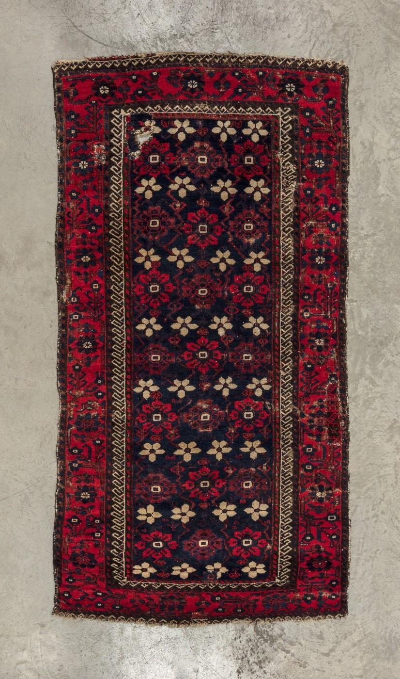 The centerpiece of this exhibition is a rare collection of 19th century Baluch and related tribes’ Mina Khani rugs. Palettes of midnight blues, coral and cherry reds, and emerald greens are often punctuated by white floral and geometric motifs, which symbolize prosperity and fertility. These textiles on an unconscious level evoke the visual effect of luminescent stars amidst the night sky.