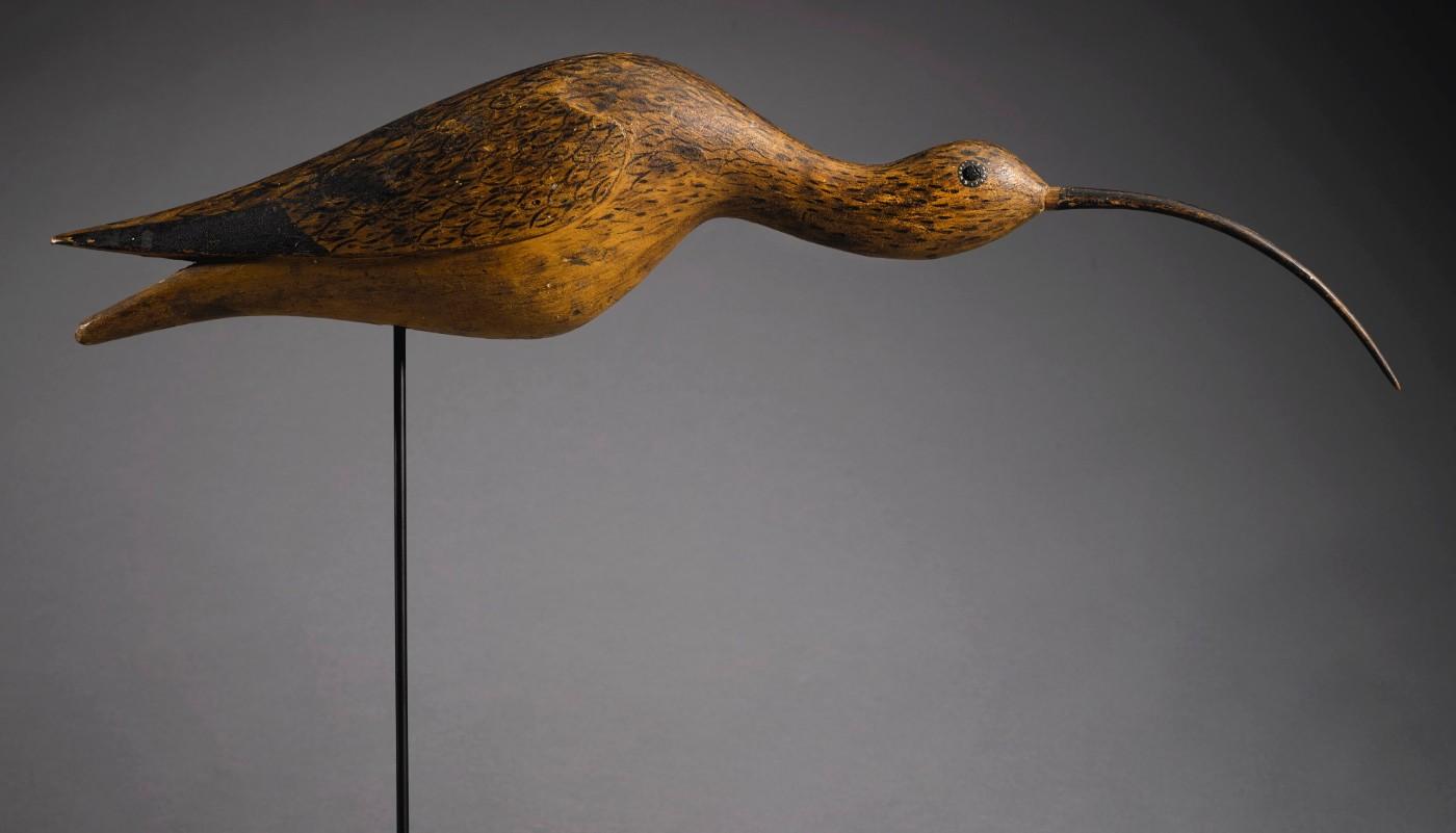 Long-billed Curlew, American School, circa 1880-1890, Salem, Massachusetts area, polychromed wood decoy with wax eye