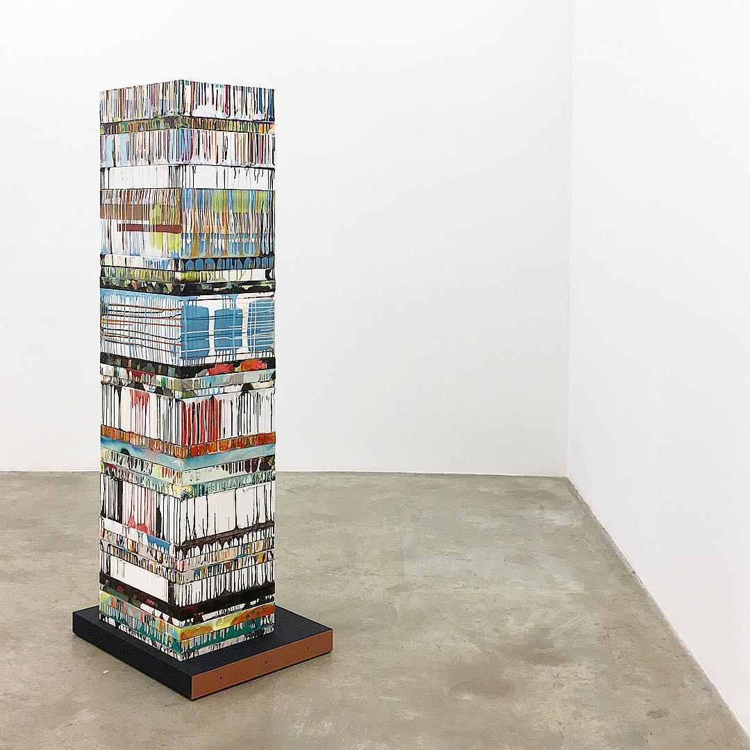 Suki Seokyeong Kang, "Mora with Black Mat," 2016, dimension variable, piled up paintings, painted steel, wheel.