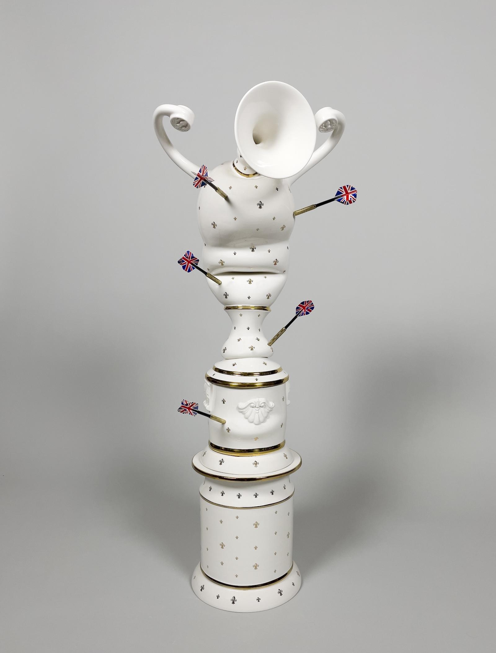 Laurent Craste, Grand vase Montcalm II, 2019/2025, Porcelain, glaze, bright gold, and darts, 36 × 13 1/5 × 11 2/5 inches