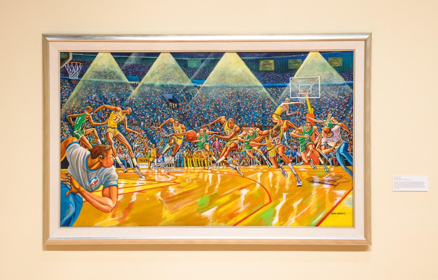 While he was a professional athlete, Barnes never strayed far from his passion for art. He continued to sketch on the sidelines, publishing illustrations in the off-season and painting commissions for his teammates. After leaving the field, the NFL made Barnes the league’s official artist, keeping him on in a salaried position. New York Jets owner Sonny Werblin introduced Barnes to the New York gallery scene, and in 1966, sponsored his first solo exhibition at Grand Central Art Galleries.
