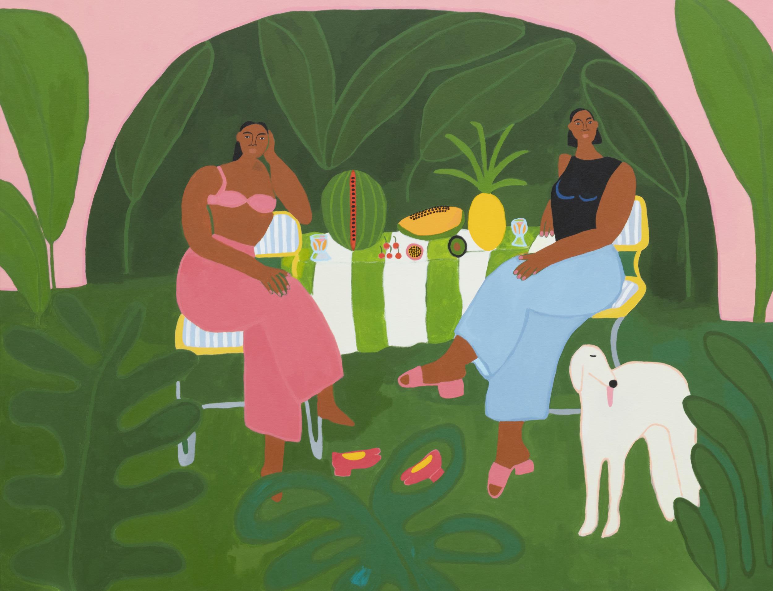 Lilian Martinez, Garden Club, 2024. Acrylic on canvas. 50 × 65 in. (127 × 165.1 cm). Collection Buffalo AKG Art Museum, Gift of Pamela and David Hornik, 2025 (2025:9).