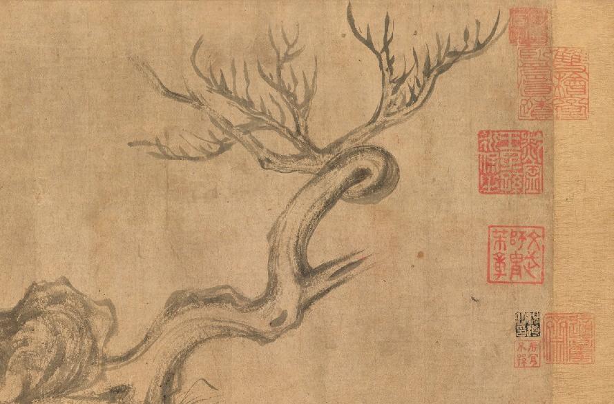 The painting is part of an extended scroll which is complemented with calligraphy by Mi Fu – a renowned painter and calligrapher and a contemporary of Su Shi. Both Su Shi and Mi Fu are amongst the four most celebrated calligraphy masters of the Song period.