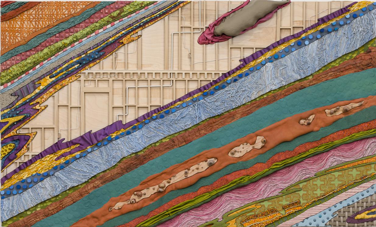 Throughout his decades-long career, Roxy Paine has investigated the tensions between human intention and the power of the natural world. The artist’s multifaceted practice includes large-scale, multimedia sculptures that examine complex systems, from the biological to the geological to the industrial. Through the expression of these interdependent systems, Paine’s work ultimately engages themes of time and decay, a crucial reminder of the hastening devastation of the earth at the hands of humanity and our own impending mortality. Sedimentary Lens presents recently created, precisely executed relief paintings akin to stratigraphic bisections that meld divergent references on the same picture plane. Commingled manifestations, including fungi, oil drums, and the surface of the moon, slip between abstraction and representation. The exhibition also presents Paine’s pixel paintings, intricate constructions that accumulate thousands of tiny nubs of paint to depict the macro and the micro, as well as the artist’s dioramas, meticulous windowed environments that mimic the format of natural history displays while complicating their function, ultimately illustrating humankind’s failures of control in the face of natural forces like death, decay, and entropy.