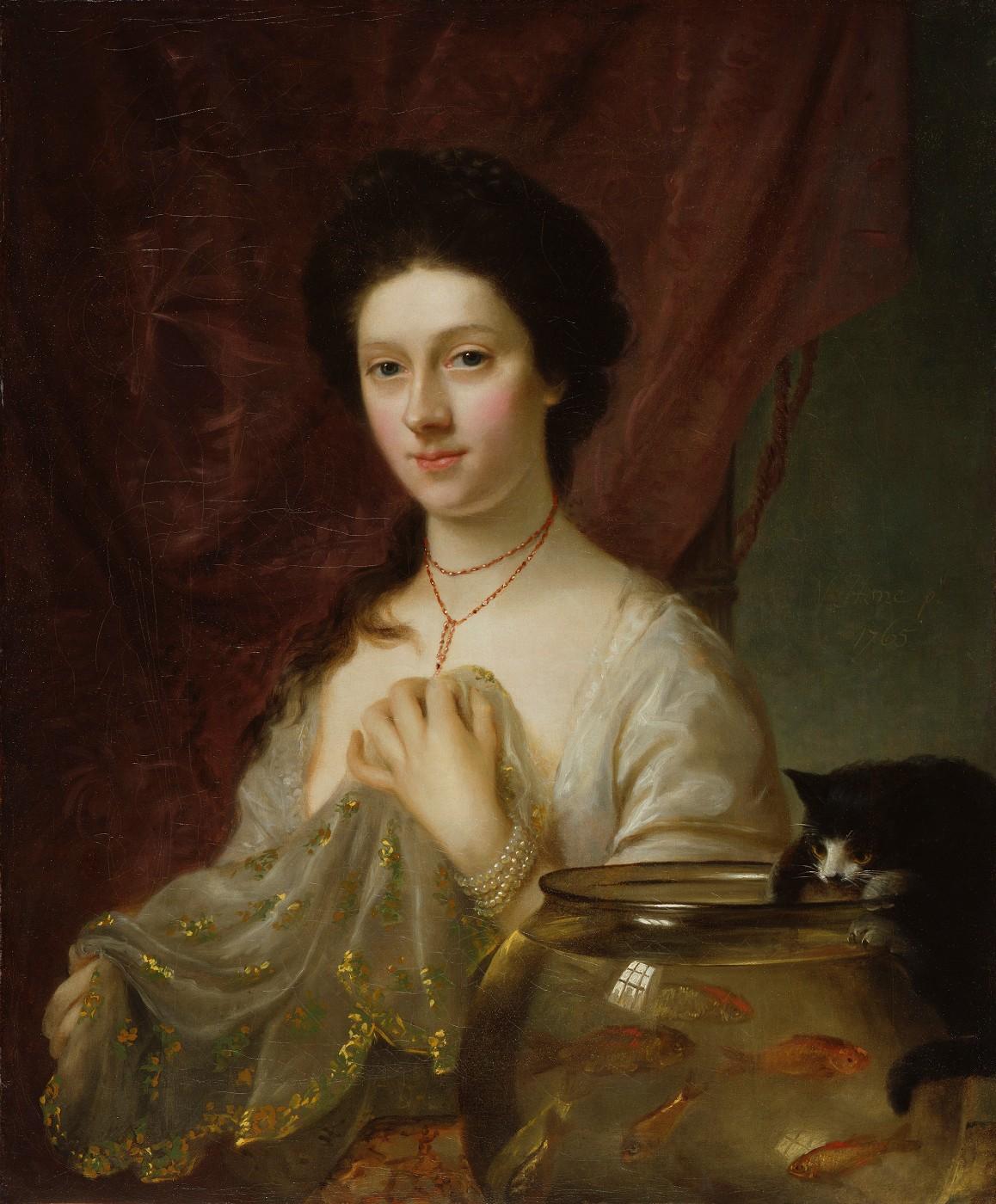 The final sections of the exhibition invite visitors to experience the art of fine dining in Casanova’s time and acquaint themselves with famous individuals he met or befriended during his travels. Projected onto a table that visitors can gather around, a video installation produced by the Detroit Institute of the Arts re-creates a multi-course meal that would have been served in the 18th century, showing historically accurate food presented on period porcelain and silver. Historical examples of such tableware can be seen within the exhibition. In a gallery devoted to portraits of the great minds of Casanova’s era—Benjamin Franklin, King George III, Catherine the Great, Samuel Johnson, Madame de Pompadour, Jean Jacques Rousseau, Voltaire, Jean le Rond d’Alembert, Pope Clement XIII, Pope Benedict XIV and Anton Raphael Mengs—visitors can take a quiz on an iPad (also available online) to reveal their ideal 18th-century dinner party guest.
