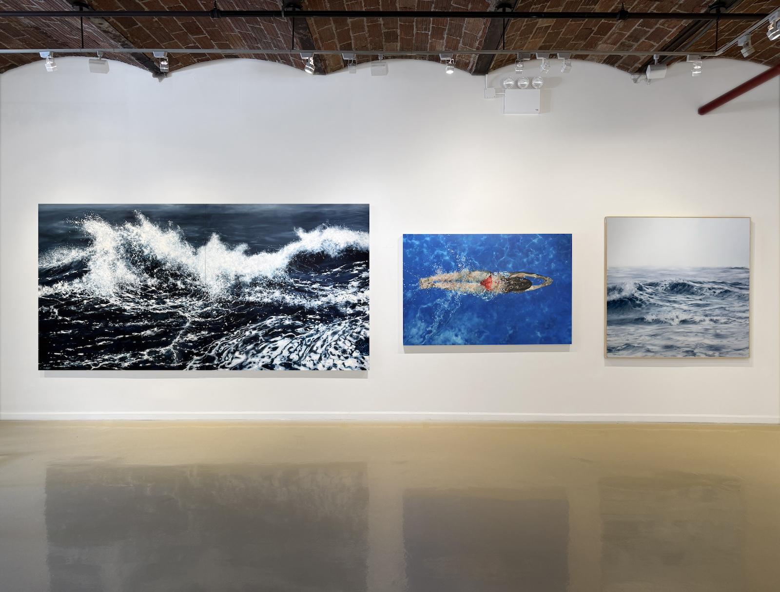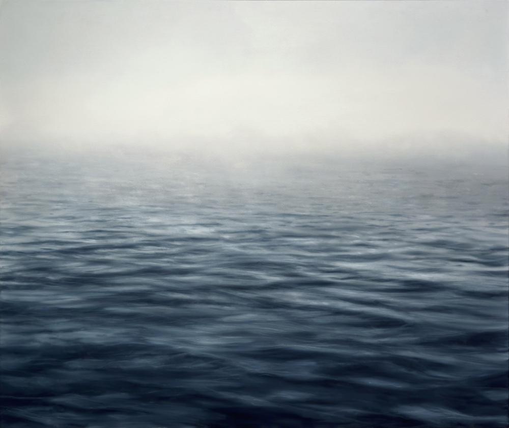 While his earlier pieces convey encounters between individuals and water in the form of psychological narrative, his subsequent paintings often focus on the water itself, most specifically the ocean. In the action of the ocean Zener finds “the visual poetry that reflects human exploration.” Repose offers us a peaceful view. Here he paints small waves and ripples, conveying the sense of a body at rest.