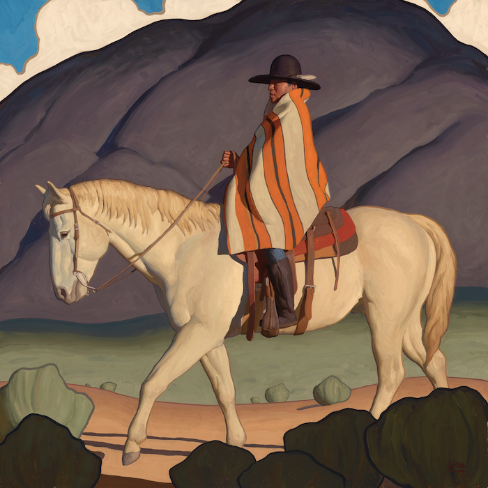 Davison Koenig, executive director and curator at Couse-Sharp Historic Site, explained the genesis of the show. “These three men represent a new generation of artists who are drinking from the same well of inspiration as the painters of the Taos Society of Artists well over a hundred years ago. All have visited our historic site and archive over the past several years, just as they’ve been growing as artists and gaining greater and greater success in the art world. We came up with the idea for them to produce work directly related to Taos people, cultures, and landscapes, and we could not be more excited about the amazing artworks they’ve produced.