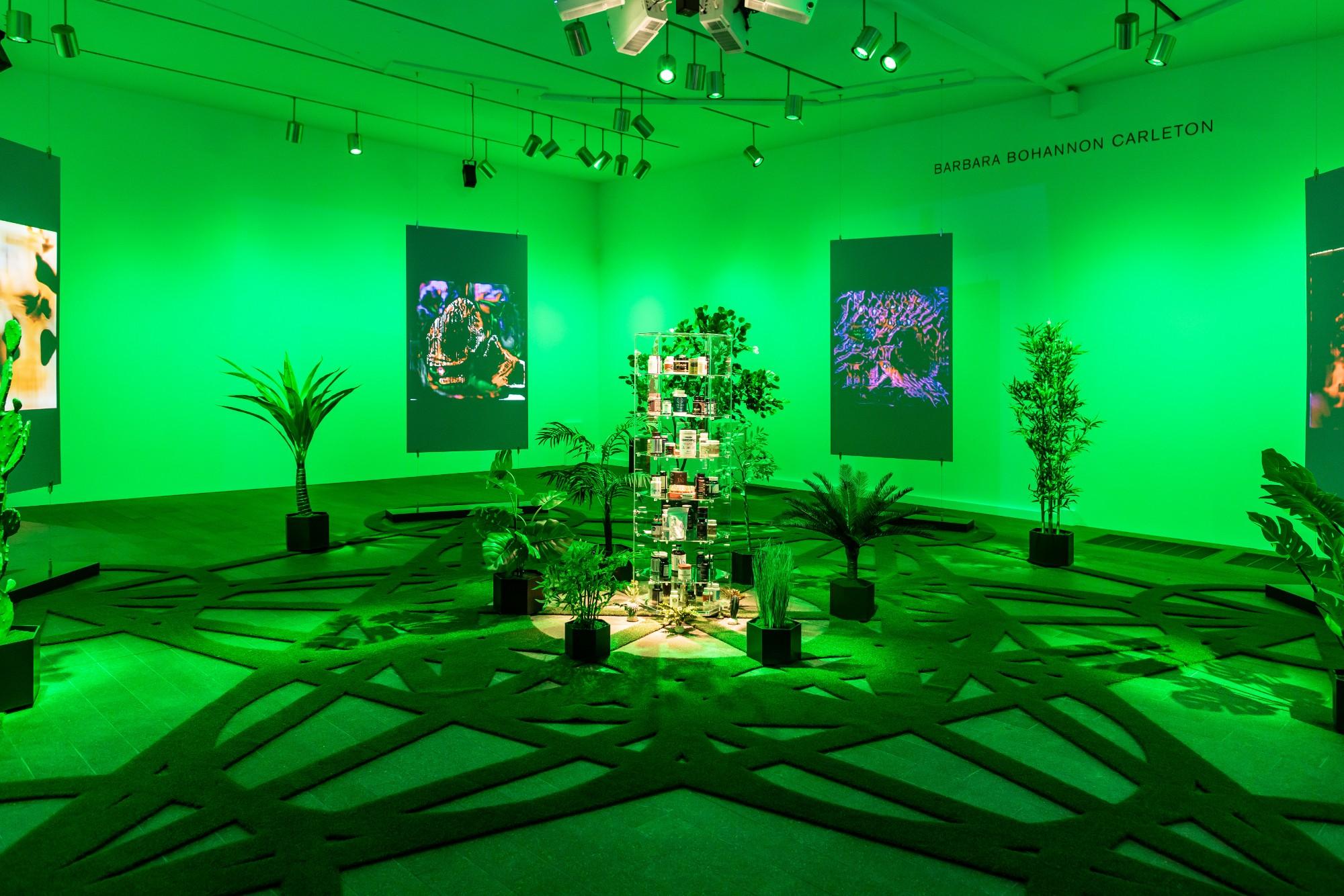 Ian Cheng’s digitally simulated AI creature BOB (Bag of Beliefs) reflects on the interdependency of carbon and silicon forms of intelligence. An algorithmic Tamagotchi, it is capable of evolution, but its growth, behavior, and personality are molded by online interaction with visitors who assume collective responsibility for its wellbeing. In A.A.I. (artificial artificial intelligence), an installation of multiple termite mounds of colored sand, gold, glitter and crystals, Agnieszka Kurant offers a vibrant critique of new AI economies, with their online crowdsourcing marketplace platforms employing invisible armies of human labor at sub-minimum wages.