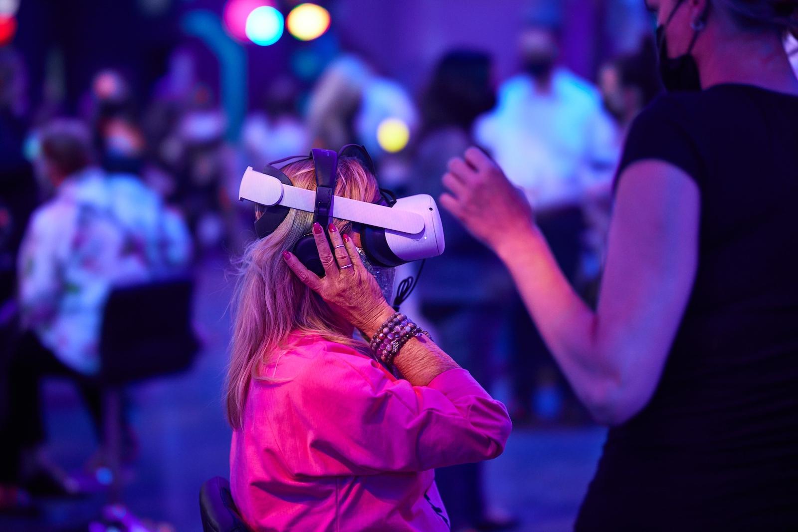 View of an attendee and staff at Van Gogh: The Immersive Experience.