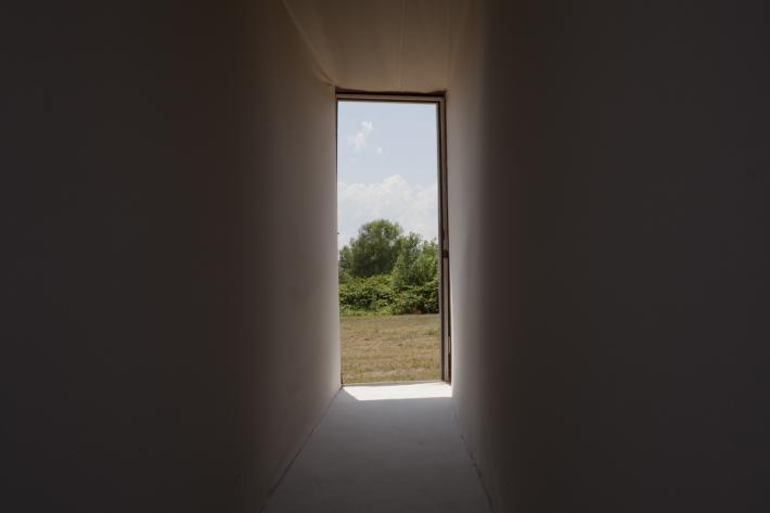 Overnight Projects is a nomadic, Vermont, artist-run collaborative that creates temporary, site-specific exhibits. On a steamy hot midsummer weekend founder Abbey Meaker and a group of selected artists from Vermont, New York and beyond, turned The Sand Bar Inn, a motel in South Hero, Vermont into a place of magic. The low-lying site had been flooded multiple times and now is an abandoned, crumbling ghost in a weedy overgrown field. From Away, the title of this temporary experiential exhibit, drew a crowd eager to explore the dilapidated interior of a former vacation paradise. Drawing on nostalgia for a nearly forgotten past these artists, assisted by a few generators, transformed peeling paint and rotting wood into art. Each artist selected one of the former motel rooms setting the boundaries of a particular experience engaging the senses beyond the visual. The amount of energy and effort it took to put together this ephemeral event was laudable. The artists remained on-site enthusiastically interacting with curious onlookers and well-informed art aficionados. A few days after the show was dismantled the Sand Bar Motel receded back into weeds letting time and weather continue their course.