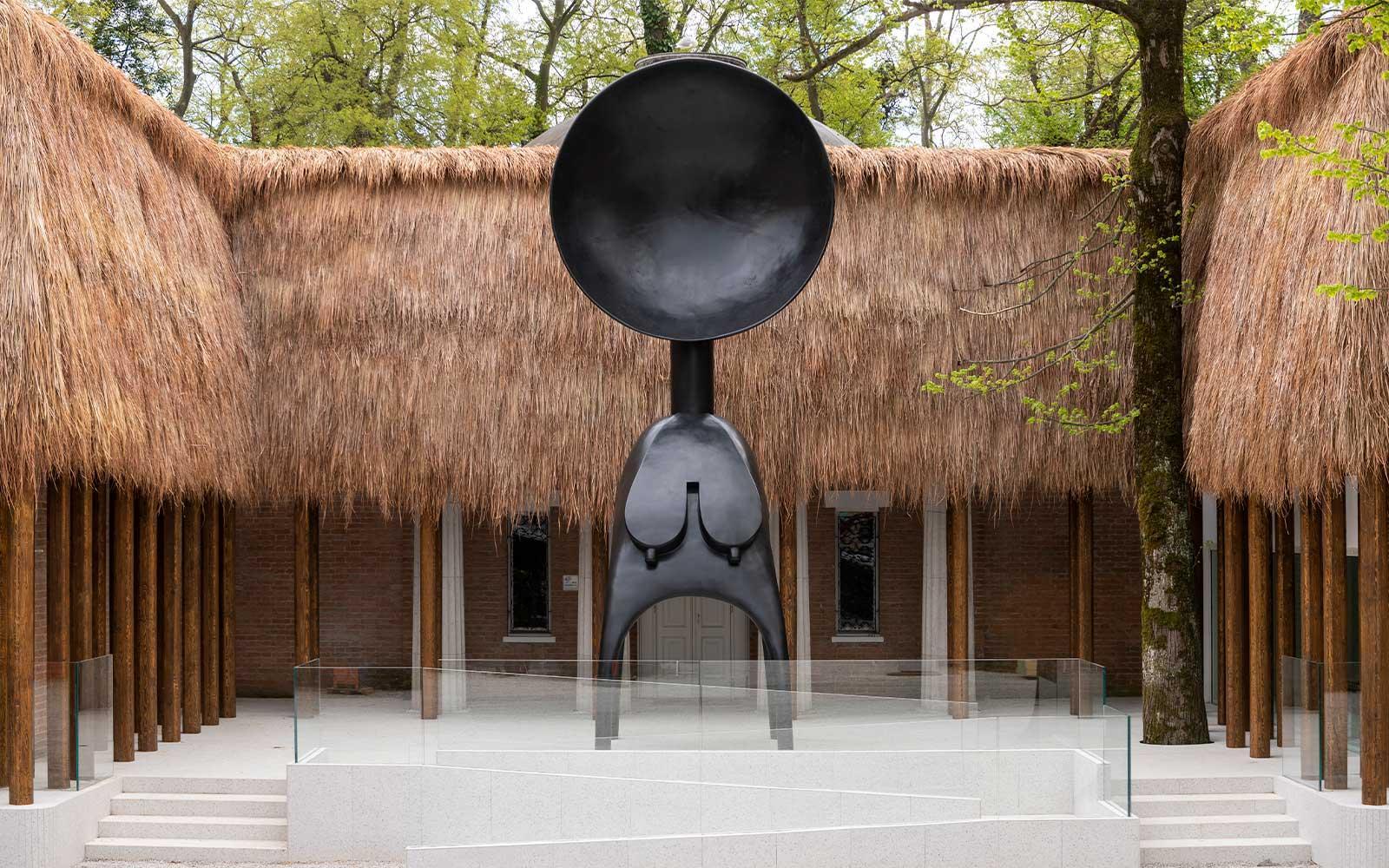 Simone Leigh's pavilion at the Venice Biennale this year brought an unprecedented degree of Black female representation to the Biennale, and certainly exceeded expectations all around. This entryway to the Pavilion was meant to evoke a "1930s African Palace," through its transformation from a classic, Jeffersonian structure. It provides a powerful showcase that simultaneously obscures colonial past, while making the historical erasure of African cultural influence visible.