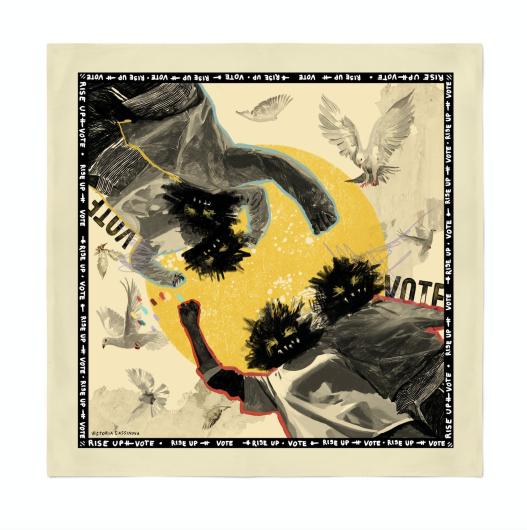 "I believe in the Artists Band Together project because I think we all can make the country better, and that art and the humanitarian spirit of artists can play a valuable role in doing so," said participating artist Shepard Fairey. "This project embraces the principles of democracy by making art accessible through the bandanas, while also providing support to the grassroots voting initiatives of the organizations benefiting from the profits -- Rise, Mijente, and Woke Vote. The caliber of artists involved is inspiring, and I believe in the story behind each work of art. I think that everyone from collectors to activists will be embracing these as collectable symbols of democracy at this historic moment."
